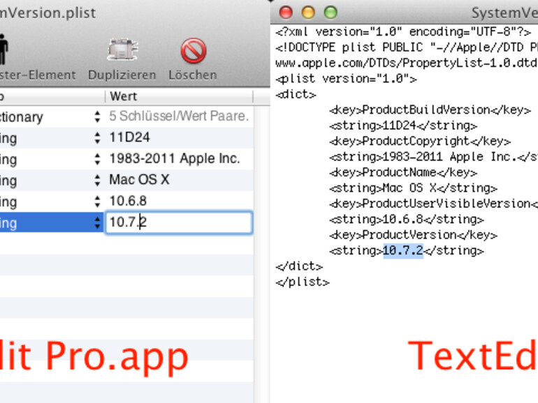 iBooks Author unter Mac OS X 10.6 Snow Leopard verwenden Schritt 2: SystemVersion.plist ändern, Teil 2