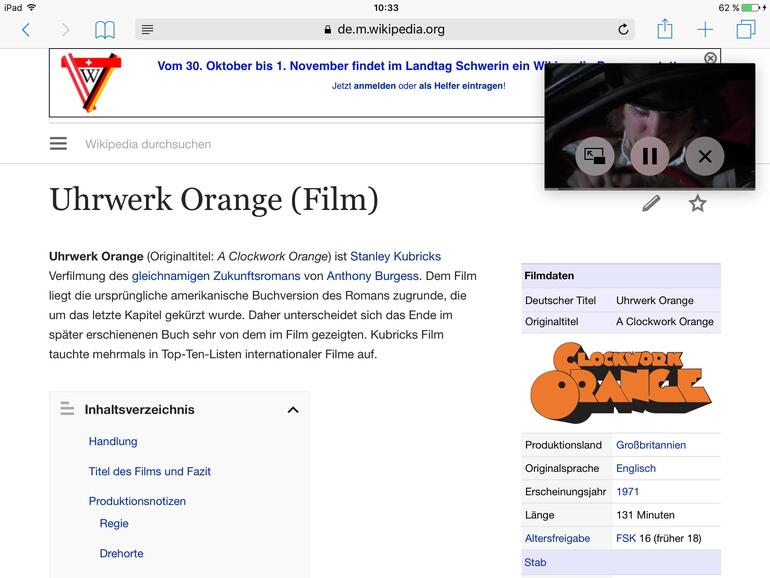 Eines der größten Ärgernisse der ersten acht iOS-Versionen wurde mit iOS 9 endlich beseitigt: Bislang musste ein Video in den Hintergrund geschaltet werden, wenn wegen einer Szene im Film zum Beispiel etwas gegoogelt wurde. Dort lief er weiter, der Ton war auch hörbar, das Bild jedoch war unsichtbar. Mit der neuen iOS-Version ist das Problem beseitigt: Unter „Einstellungen“ > „Allgemein“ > „Multitasking“ findest du den Punkt „Dauerhafte Videoüberlagerung“. Wenn du diese Funktion aktivierst, kannst du zum Beispiel Filme aus der „Videos“-App dauerhaft einblenden, während du auf dem iPad etwas anderes erledigst. Übrigens lässt sich das Fenster auch in die verschiedenen Bildschirmecken verschieben.