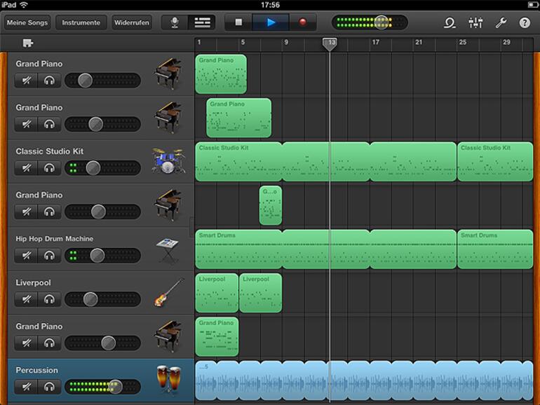 Konzeptioniert für das iPad2 braucht es eine gewisse Ladezeit auf dem iPad1 zwischen den Instrumenten umzuschalten. Dafür, dass die App für das iPad2 beworben wurde, ist Apple hochzuhalten, dass sie trotz längerer Ladezeiten nicht komplett auf es technisch beschränkt ist. Instrumente reagieren auch auf dem iPad1 hinreichend schnell.