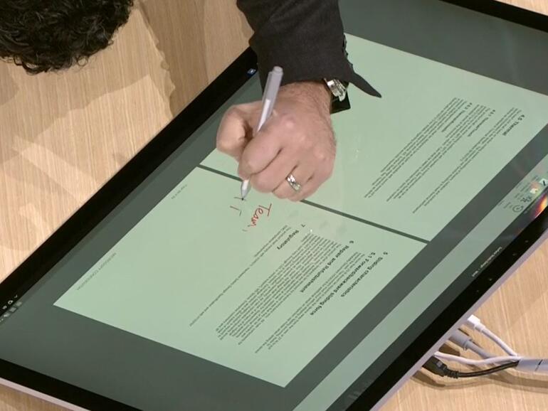 Viel mehr Zeit nahm sich Microsoft für das Surface Studio. Dabei handelt es sich um einen toll designten, ultradünnen All-In-One-PC. Diese Beschreibung kratzt allerdings nur an der Oberfläche von dem, was das Surface Studio eigentlich ist. Denn der PC besitzt nicht nur eine überragende Hardware, ein wahnsinnig scharfes und farbtreues 28 Zoll-Touch-Display mit 13,5 Millionen Pixeln und einem neigungsfähigen Ständer, dank dem das Gerät zur Zeichenunterlage werden kann.