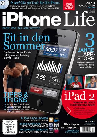 iPhone Life 3.2011 • Auf CD: 90 Tools für Ihr iPhone• Über 100 Apps im Test• Fit in den Sommer: erfolgreiches Training mit dem iPhone Jetzt sofort lesen Print-Ausgabe kaufen Inhaltsverzeichnis Oder in der Kiosk-App lesen