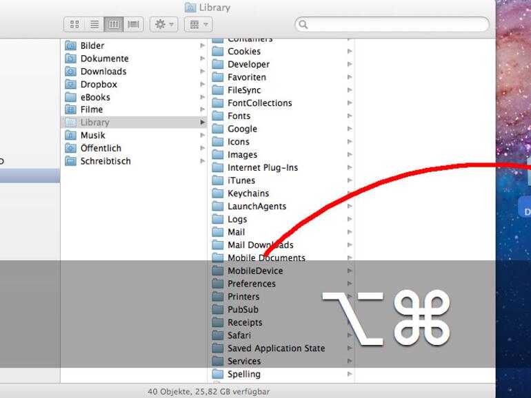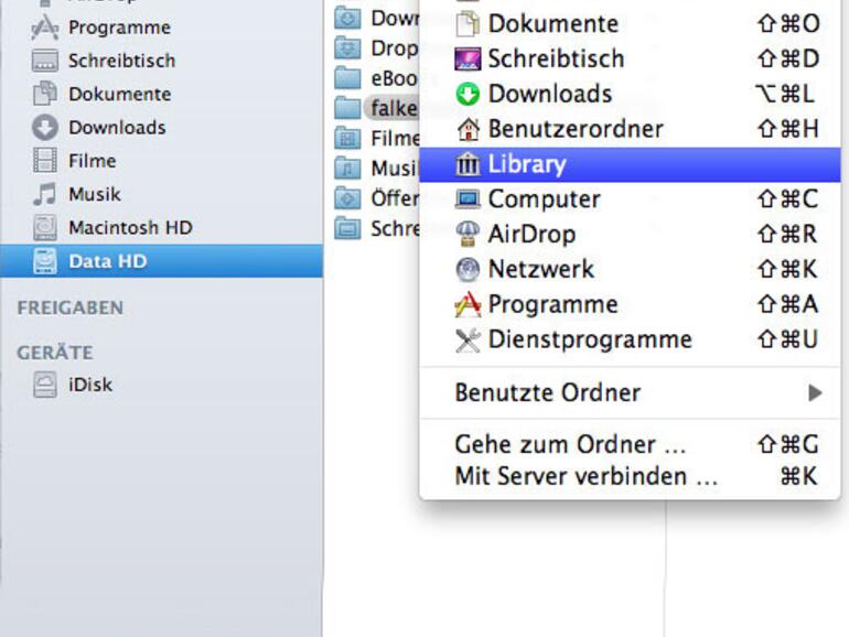 Der Ordner findet sich in OS X im versteckten Library-Ordner des Benutzers. Wird bei einem Klick auf den Finder-Menü-Eintrag Gehe zu die alt-Taste gedrückt gehalten, lässt sich der Eintrag Library im Menü wählen. Unter Mobile Documents speichert OS X die per iCloud zu synchronisierenden Dateien. Werden in diesem Ordner nun Dateien abgelegt, synchronisiert iCloud diese auch auf andere Macs, bei denen die gleiche iCloud-ID verwendet wird. In den iCloud-Einstellungen unter OS X werden die Dokumente allerdings, anders als Backups, Mails und iWork-Dokumente, jedoch nicht aufgeführt.