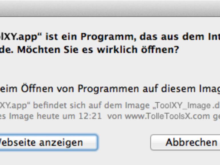 - Ist die Option „Keine Einschränkungen“ gewählt, lassen sich Anwendungen ganz wie bisher auch installieren – egal ob aus dem Mac App Store, von Datenträgern oder aus dem Internet heruntergeladene Programme. Eine Warnung, dass „ein Programm aus dem Internet“ geöffnet wird, kann sich OS X aber dennoch nicht als Warnhinweis verkneifen.