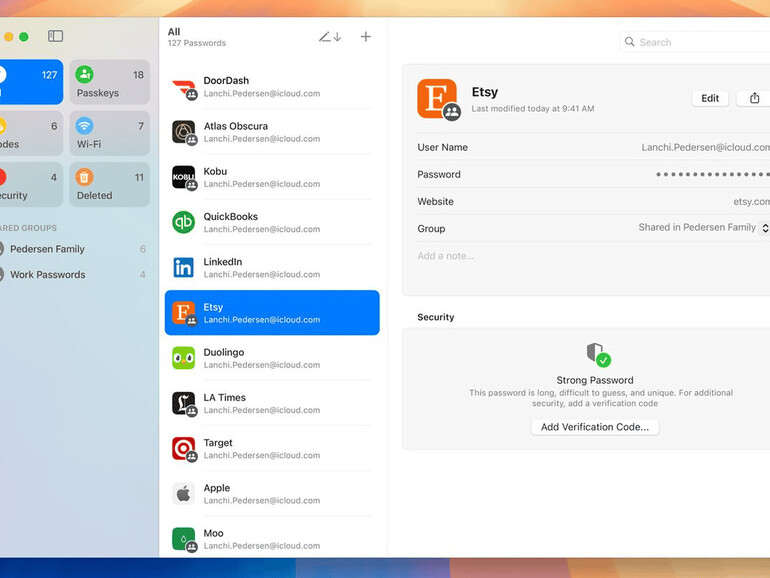 Neben deinen Anmeldeinformationen für Websites und Apps kannst du in der neuen Passwörter-App auch deine WLAN-Passwörter und Bestätigungscodes sicher speichern. Das ging zwar vorher auch schon, allerdings waren die WLAN-Passwörter bisher immer getrennt von den anderen Passwörtern zu finden. Nun ist das ganze in der Passwörter-App vereinheitlicht.