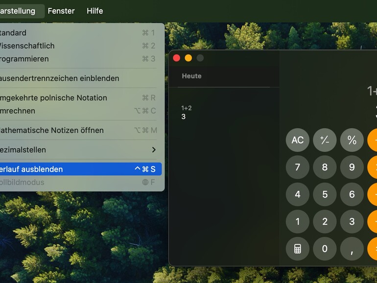 Auch der Taschenrechner bekommt mit macOS Sequoia ein großes Upgrade. Eine lang ersehnte neue Funktion ist der Suchverlauf. Nun sind vorherige Eingaben nicht mehr für immer verschwunden, nur weil du eine neue Berechnung vornehmen musstest. Der Suchverlauf befindet sich gleich links neben dem Rechenfeld.