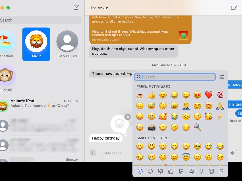 Wer kennt sie nicht: diese kleinen Emojis, mit denen du schnell auf Nachrichten reagieren kannst, ohne wirklich antworten zu müssen. Bislang war die Auswahl hier aber begrenzt. Mit MacOS Sequoia und den neuen iOS und iPadOS-Versionen kannst du nun mit jedem Emoji auf Nachrichten reagieren!