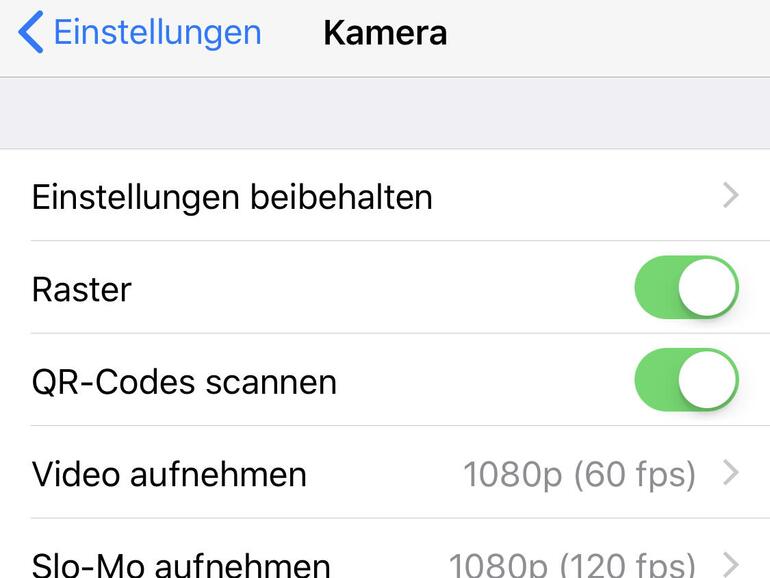 Der neue QR-Code-Scanner von iOS 11 ist praktisch unsichtbar in das System integriert. Er lässt sich in den Einstellungen der Kamera-App mit dem Schalter „QR-Codes scannen“ an- und ausschalten.