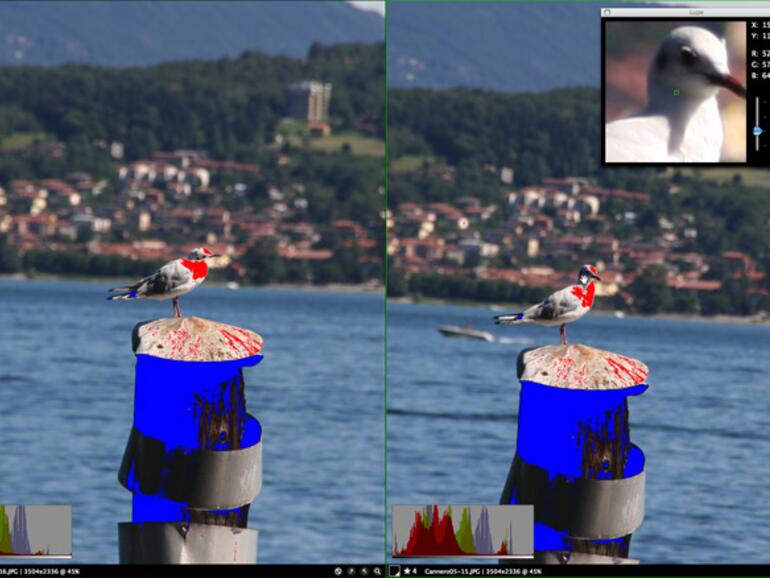 Erstes neues Highlight ist der virtuelle Leuchtkasten, der den Vergleich von bis zu vier Bildern ermöglicht. Doch auch die Darstellung eines einzelnen Bildes ergibt damit Sinn, da hier die gesamte Bildschirmfläche genutzt wird. Die in diesem Modus geöffneten Bilder können miteinander verknüpft werden. In diesem Fall werden die Bilder gleichzeitig gescrollt und gezoomt. Sinnvoll ist das beim Vergleich motivgleicher Aufnahmen. Eine Lupe vergrößert auf Wunsch den Bereich, der mit der Maus überfahren wird. Es lassen sich Histogramme einblenden und eine Warnanzeige für Belichtungsfehler. Überbelichtete Bereiche, beispielsweise Himmelspartien, die keine Zeichnung mehr enthalten, werden rot unterlegt. Dunkle, unterbelichtete Ausschnitte werden blau eingefärbt.