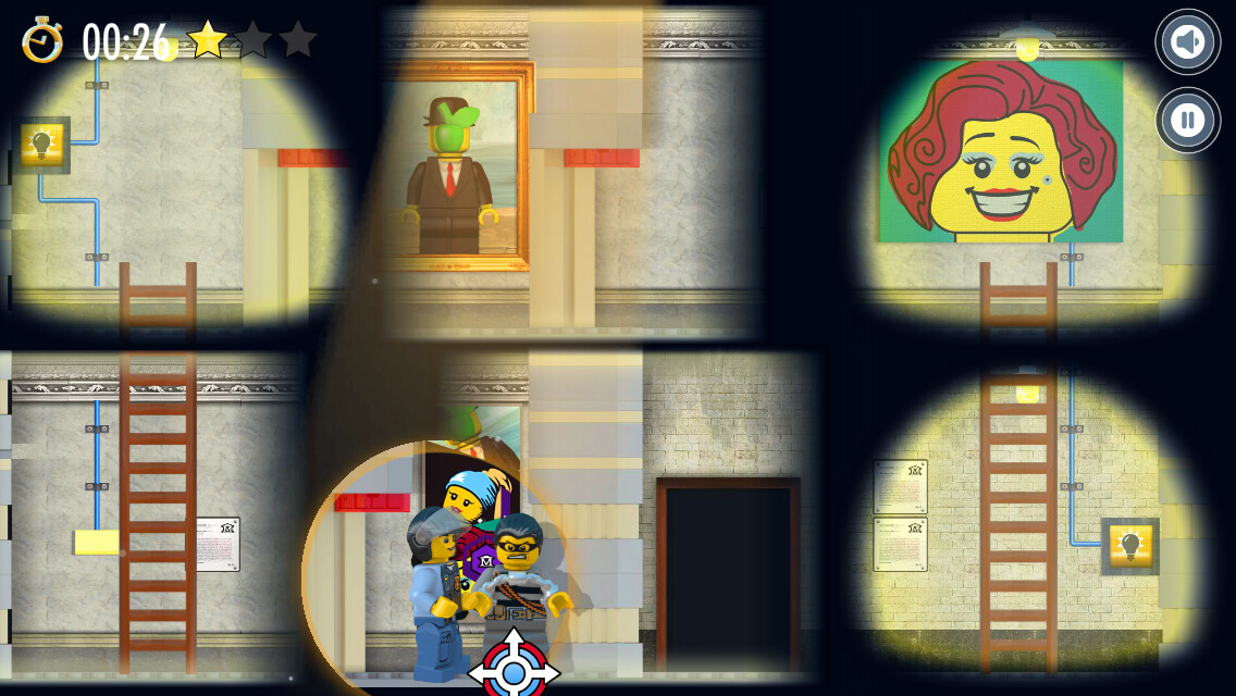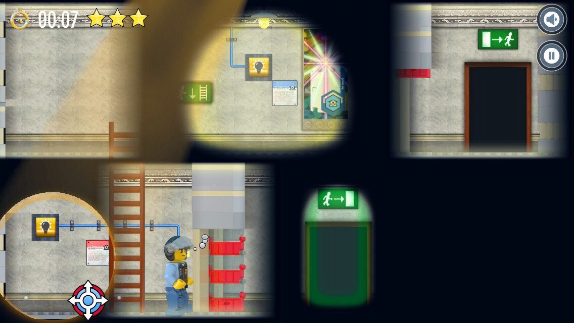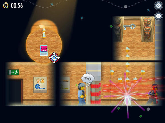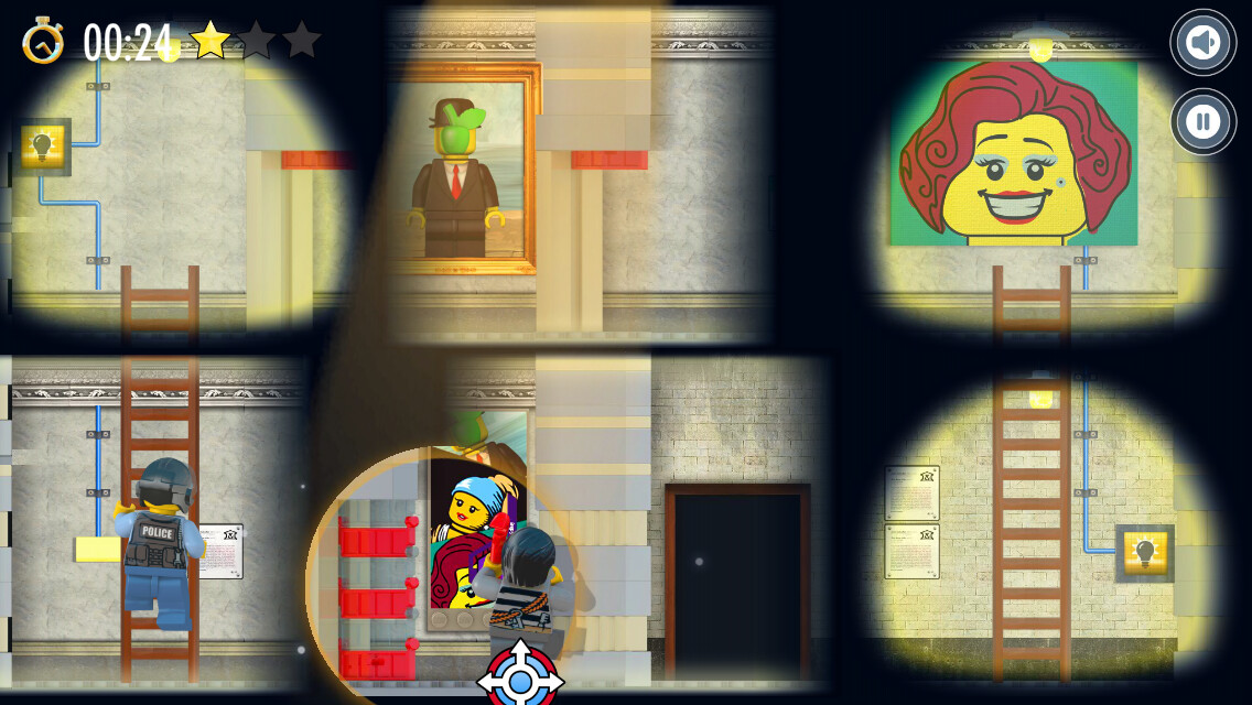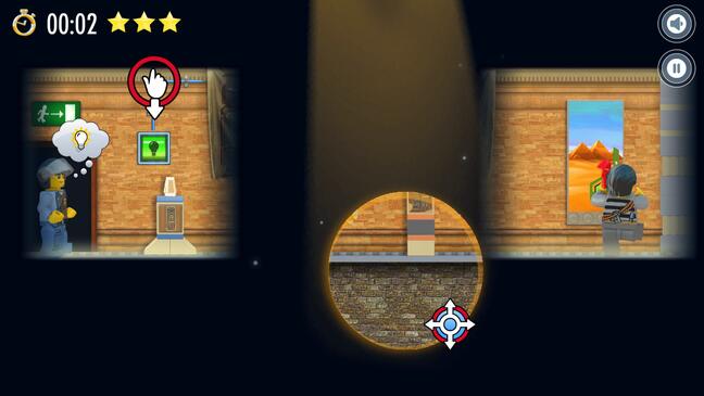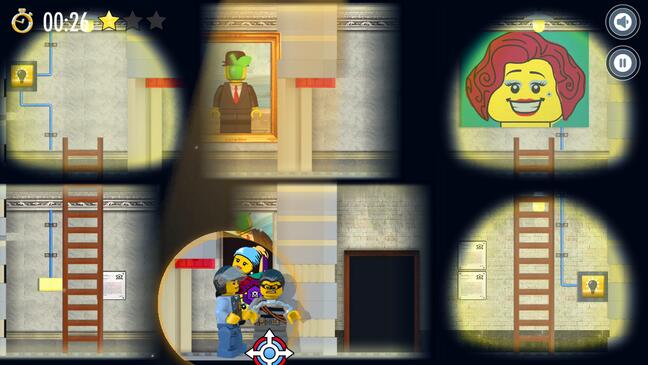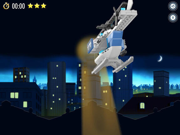 Das Spiel City Spotlight Robbery von Lego erinnert an die Zeit, in der man Spiele grundsätzlich in der seitlichen Ansicht gespielt hat. Ob Super Mario, Donkey Kong oder Asterix und Obelix. Lego lässt dieses Spielgefühl wieder aufleben. Ziel des Spiels ist es, den Räuber in Ketten zu legen. Hierfür muss der tapfere Polizist zunächst einige Hürden meistern. Hier kommen Sie ins Spiel. Zeigen Sie ihm den Weg, indem Sie den Spotlight des Helikopters lenken. Indem Sie an den richtigen Stellen das Licht einschalten, Leitern verschieben und weitere Aufgaben lösen. Jedes Level kann mit der Höchstpunktzahl von drei Sternen abgeschlossen werden. Dies bedarf allerding nicht nur Geschick, sondern auch Schnelligkeit. Nicht zu vergessen, dass Sie auf Ihrem Weg auch noch die versteckten Coins, Schlüssel und andere Objekte einsammeln sollten, um überhaupt voran zu kommen.