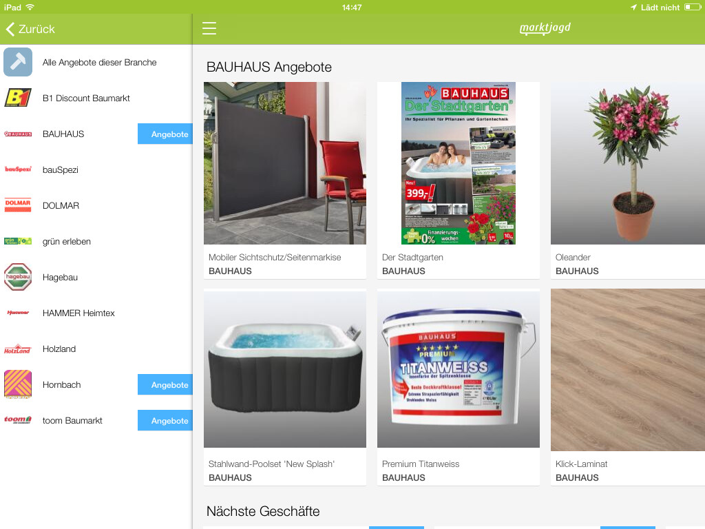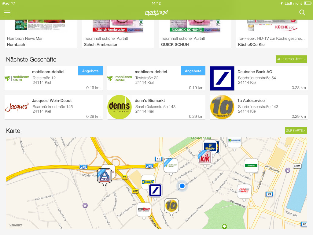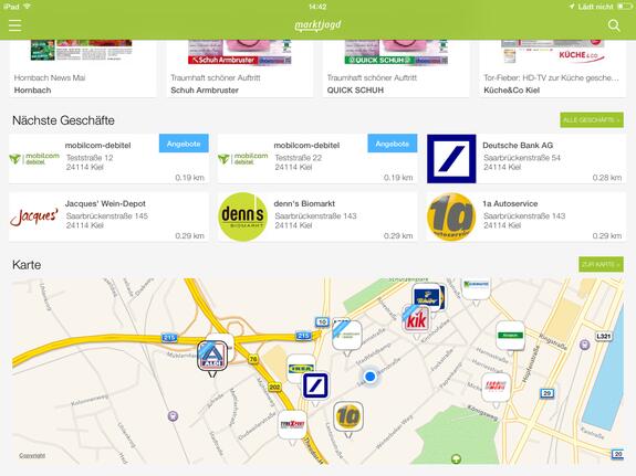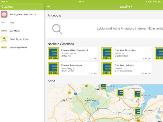 Die App-Entwickler versprechen über 200.000 aktuelle Prospekte und Angebote bei mehr als 1.400 Händlern. Kleinere Geschäfte, wie Tante-Emma-Läden oder Spezialitäten-Geschäfte tauchen zwar in der Kartenfunktion auf, in den Branchenlisten sind sie allerdings nicht vermerkt.