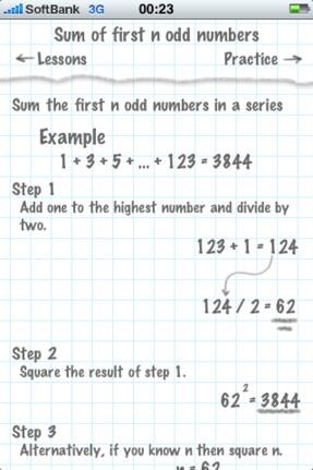 Die Lektionen tragen Titel wie „Multipliziere jede Zahl mit 99“. Zunächst wird der „Trick“ erklärt, der bei großen Zahlen meist darin besteht, sie in kleinere zu zerlegen. Danach wird geübt, die App stellt jeweils vier Antworten zur Auswahl. Dieses Training kann endlos laufen, motivieren sollen die verschiedenen Ränge: Wer eine bestimmte Anzahl Fragen beantwortet, steigt auf. Im „Mathemagics Store“ gibt es weitere Tricks zum Nachkaufen.