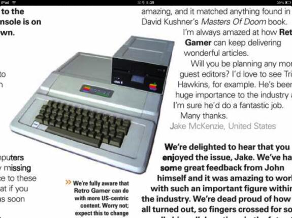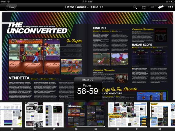 Dies ist bei Pixelmags nicht möglich - und ist deshalb ärgerlich, weil sich das Lesevergnügen mit dem Reader in Grenzen hält. Das liegt vor allem an der seltsamen Aufteilung in Übersichts- und Vergrößerungsmodus: In ersterem wird geblättert, aber es werden keine Gesten erkannt. Dies funktioniert erst, wenn durch doppeltes Antippen in den Vergrößerungsmodus gewechselt wird - dort ist aber wiederum kein Weiterblättern möglich. Da kommt der Wunsch nach einer PDF-Ausgabe auf, die es allerdings bei der Retro Gamer nur auf DVD gibt. Kleineres Ärgernis: Im Übersichtsmodus wird nicht die volle Bildschirmhöhe des iPads ausgenutzt.
