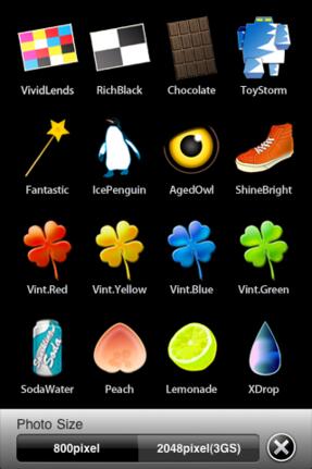 Das „tan“ ist ein verniedlichendes Namenssuffix, aber CAMERatan ist durchaus ernstzunehmen. Es verarbeitet entweder Fotos direkt von der Kamera oder der Camera Roll, auf dem iPhone 3G beträgt die maximale Auflösung 800x600, beim iPhone 3GS wird die volle Auflösung unterstützt. Dies dürfte Speicherplatzgründe haben, denn einige der 32 Effekte sind durchaus aufwändig.