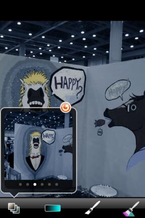 Das Einfärben geht mit ColorBlast tatsächlich einfacher als mit Color Splash - wenn denn das Motiv stimmt. Spätestens bei Detailarbeiten kommt dann doch die Farbrolle zum Einsatz, da der Finger einfach nicht die Präzision bietet, kleine S/W-Reste zuverlässig zu treffen. Weiche Pinsel oder die alternative Ansicht von Color Splash, bei der eingefärbte Bereiche rot dargestellt werden, gibt es nicht, dennoch gehört ColorBlast zu besseren Farbeimern im App Store.
