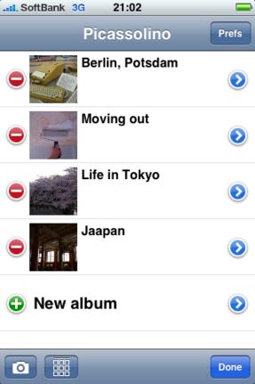 Mit Picassolino lassen sich hochgeladene Fotos betrachten, sowie Webalben erstellen und füllen – letzteres entweder mit frisch aufgenommenen oder bereits vorhandenen Fotos. Natürlich muss der App dazu zunächst Name und Passwort gegeben werden, damit es auf die Webalben zugreifen kann.
