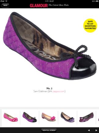Ein ungewöhnliches Experiment, bei dem das Querformat aber deutlich schlechter abschneidet: Es nervt, nicht ständig auf das Inhaltsverzeichnis zugreifen zu können. Ansonsten ist der Glamour ein gutes Debüt gelungen, bei dem jedoch nur zaghaft Videos und interaktive Elemente eingesetzt werden. Ein Artikel ist sogar exklusiv, aber die Shoppingseiten hätte der Verlag gerne um Tipps zum Kombinieren und 3D-Ansichten ergänzen können - manche Website ist in dem Punkt schon weiter und zeigt Jeans auch von hinten.