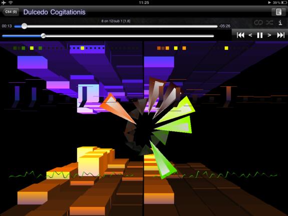 Der Eindruck, es ging dem Modizer-Entwickler vor allem ums Klotzen, drängt sich spätestens dann auf, wenn auch noch die visuellen Effekte aktiviert werden. Die App enthält nicht nur das übliche Oszilloskop, sondern gleich echte visuelle Effekte ähnlich iTunes.