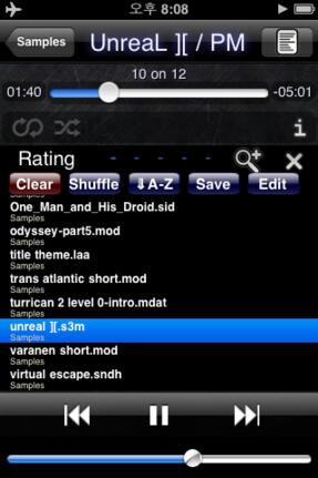 Anders als der SidPlayer Pro unterstützt Modizer eigene Wiedergabelisten, allerdings ist die Bedienung noch nicht sehr komfortabel und beispielsweise nicht mit iTunes zu vergleichen. Für die Titel wird ein zu großer Schriftsatz gewählt, die Dateiendung müsste eigentlich nicht unbedingt dargestellt werden.