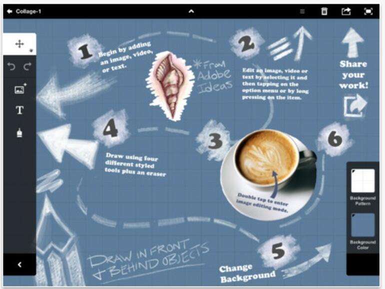 Mit Adobe Collage lassen sich Fotos, Grafiken, Videos und Texte zu einem Moodboard für Präsentationszwecke zusammenfügen. Ein Moodboard kann beispielsweise direkt mit Dateien aus Google, Flickr und YouTube zusammen gestellt werden. Adobe Collage* setzt mindestens iOS 4.3 voraus und ist ebenfalls mit allen iPad-Generationen kompatibel.
