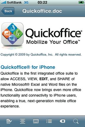 "Quickoffice kann für sich in Anspruch nehmen, die einzige Office-Suite für das iPhone zu sein..."