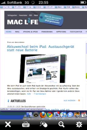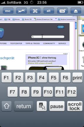 TeamViewer passt automatisch die Qualität der Verbindungsgeschwindigkeit an - bei optimaler Geschwindigkeit sieht der Bildschirm in etwa so aus, als würde man den Windows-PC oder Mac mit lediglich 256 Farbtönen betreiben. Über Wi-Fi ruckelt es natürlich deutlich weniger. Als Tastatur wird die normale iPhone-Softwaretastatur verwendet, oben stehen allerdings die computertypischen Umschalttasten zur Verfügung. Die restlichen Tasten lassen sich ebenfalls einblenden.