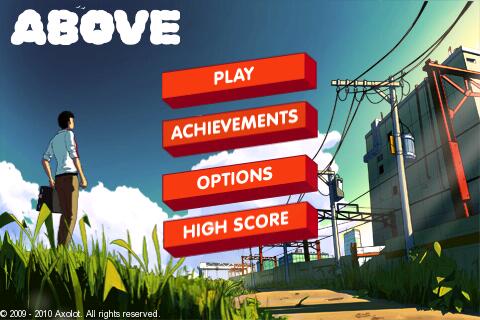 Drei Level gibt es, die sich in der Hintergrundgrafik (Stadt, Teefeld, Erdorbit) und dem Schwierigkeitsgrad unterscheiden. Wie die meisten Spiele dieses Genres wird auch für Above lediglich ein Finger benötigt. Je länger dieser auf dem Display bleibt, desto höher springt er. Die Seiten lassen sich als Bande ausnutzen. Verpasst er eine Plattform, bleibt dies nur dann ohne Folgen, wenn er nicht weiter als einen Bildschirm herunter fällt. Anhalten lässt sich der gestresste Mann nicht.
