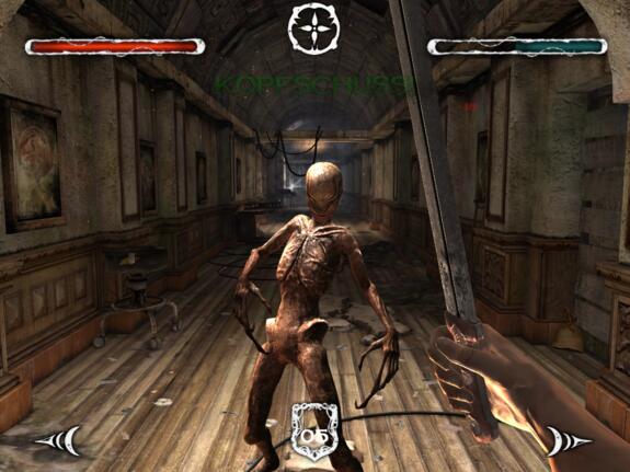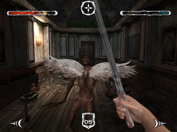 Ein verängstigter Rollstuhl-Greis ist der einzige wohlmeinende Sozialkontakt. Dieser gibt per Intercom-Durchsagen fortwährend meist unsinnige Kommentare von sich. An unfreundlichen untoten Bewohnern, die Pans Labyrinth entsprungen scheinen, herrscht indes kein Mangel. Diese werden mit Hiebwerkzeug und Bolzenschußgerät aus dem Weg geräumt. Aus siegreichen Schlachten gewonnene Erfahrung und Schätze werden in die Veredelung der Ausrüstung und der eigener Fähigkeiten investiert. Der Bewegungsradius ist sehr beschränkt, man hangelt sich von festgelgtem Punkt zu festgelgtem Punkt. Das Durchsuchen der Räume läuft ab wie ein Wimmelbildspiel: umschauen, entdecken, antippen, nächster Raum.