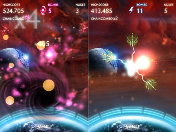 Zwar verfügt die Erde über einen widerstandsfähigen Schutzschild und zahlreiche Waffensysteme, doch die Außerirdischen sind die reinste Massenplage. Kleinere Einheiten lassen sich mit einfachen Bomben abwehren, wobei in Formationen heransausende Schiffe von Kettenreaktionen zerfetzt werden. Später kommen bessere Bomben hinzu, auch solche die schwarze Löcher erzeugen, und die Gegner einfach verschlucken. Schwere Jäger und Bomber werden mittels Laserstrahl gebrutzelt, was wegen deren Bewegungsfreude zur Herausforderung wird, zumal man sich bei mehr als vier Gegnern durchaus auch mit den eigenen Fingern in die Quere kommt. Jede Invasionswelle wird mit dem Angriff eines Boss-Gegners abgeschlossen – am Ende des Spiels gilt es das Mutterschiff zu zerstören.