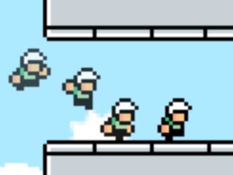 Statt des durch Röhren zu steuernden Vogels wird ein Pixelheld mit weißem Helm gezeigt, der in Minimal-Animation zwischen Gebäuden Parkours zu laufen scheint. Von diesem Setting wäre zumindest zu erhoffen, dass die Spielfigur nicht unweigerlich abstürzt, wenn man nicht unentwegt auf dem Touchscreen herumhämmert. Der Suchtfaktor von Flappy Bird war es, der bei Nguyen angeblich Besorgnis erregte. Ob der neue Titel weniger süchtig macht?