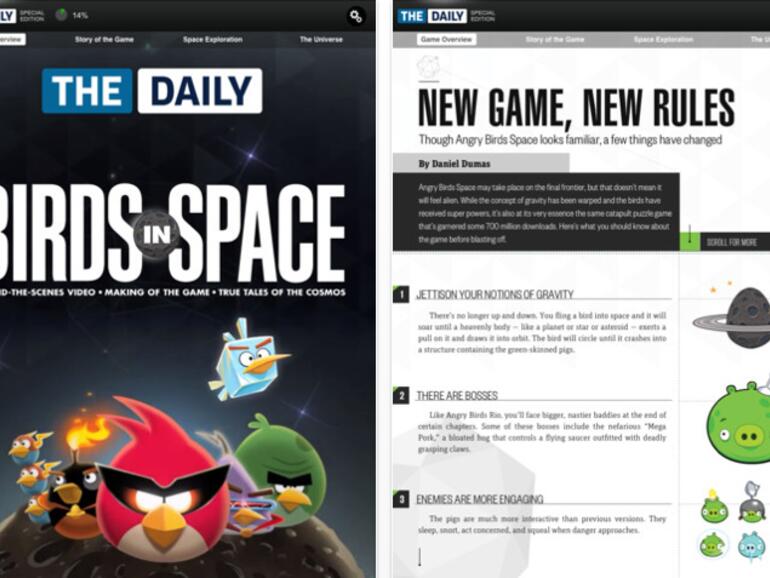 Wer es partout nicht bis zum morgigen Veröffentlichungstermin des Spiels aushält, kann sich die Wartezeit mit der Gratis-App „Space Guide“ aus der „The Daily“-Redaktion vertreiben. Hier werden die neu eingeführten Vögel vorgestellt, Hintergrundberichte zur Entstehung des Titels, interessante Links und Apps zum Thema Weltraum gereicht.