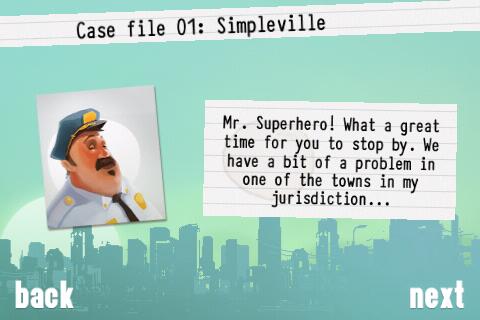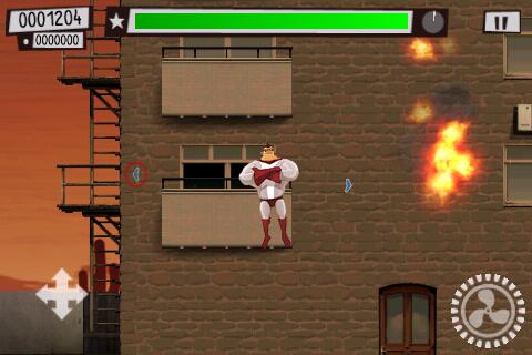 Gesteuert wird der Held über einen virtuellen Joystick, mit einem Druck auf den Feuerknopf gibt er zusätzlich Schub, eine weitere Taste aktiviert seine Heldenkräfte. Er lässt sich sehr elegant durch die Lüfte steuern, die Grafik ist flüssig animiert und es bringt Spaß, mit ihm durch die Lüfte zu kurven. Besonders präzise lässt er sich nicht steuern, mancher Anwohner und Gegner ist beim ersten Anflug nicht zu erwischen. Seine Aufträge umfassen die Bekämpfung gewöhnlicher Verbrecher, aber auch die Beseitigung von mutierten Tiere, Zombies oder diversen Schurken.