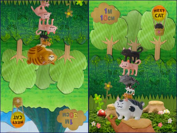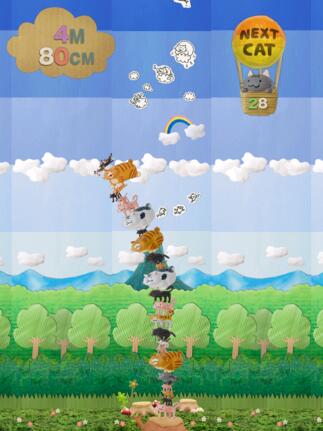 Der Name ist etwas irreführend, klingt es doch so, als würde es sich gar nicht um ein vollwertiges Spiel handeln. Die japanische Version hat auch nicht den Zusatz „Toy”, sondern リアル (real) bekommen - merkwürdig. Wie bei den beiden iPhone-Vorgängern gilt es jedenfalls, Katzen zu stapeln. Diese gibt es in drei Größen, es wird zufällig eine ausgewählt. Ziel ist es, einen möglichst hohen Katzenturm zu bauen.
