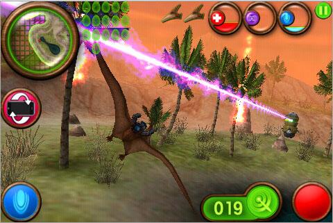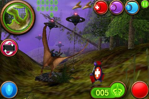 In ferner Zukunft sind die Dinosaurier wieder da, reisen durchs All und machen sich modernste Technik zunutze. Die Dinos 2.0 nennen sich Nanosaur und streiten sich aus uns bis dato unbekannten Gründen um diverse Saurier- Eier. Ihre Mission besteht in diesem Spiel darin, einige dieser Eier einzusammeln und zu Wurmlöchern zu schaffen. Andere Saurier fi nden das freilich nicht so lustig und versuchen Sie mit Raketen, Laserwaffen und Zähnen aus der Luft zu holen. Nanosaur 2 ist also ein Ballerspiel in einer eher ungewöhnlichen Umgebung. Das Spiel ist nicht neu, gibt es dieses doch schon länger für den Mac, wo es auch mit 3D-Brille gespielt werden kann. Am iPhone profi tiert es vor allem von der Steuerung, die sich den Beschleunigungssensor zunutze macht. Die Grafi k ist sehr ansprechend, das Spiel wird jedoch recht schnell eintönig.