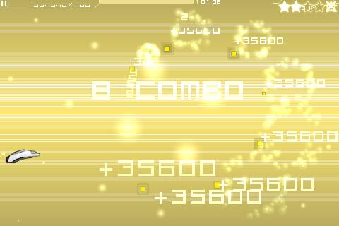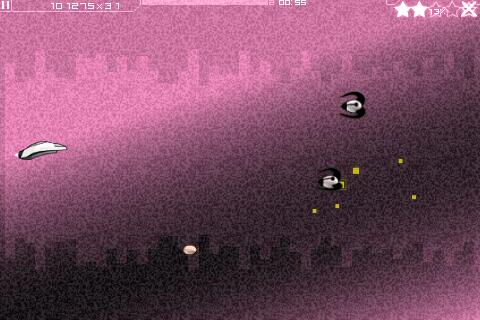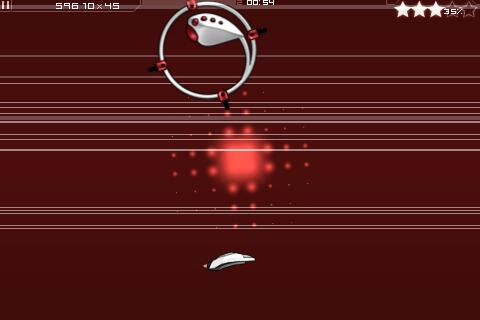 Denn die nächsten Planeten werden nur freigeschaltet, wenn genug Sterne verdient wurden. Dazu müssen in den Levels Gegnerschwärme möglichst auf einmal ausgeschaltet werden. Es reicht, über die Gegner rüberzustreichen, wird der Finger losgelassen, feuert das Raumschiff. Mit dem zweiten Finger wird das Raumschiff gesteuert - ein echtes Multitouch-Spiel also.