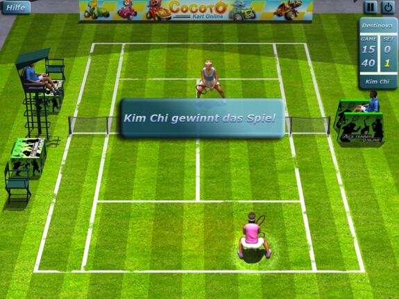 Es gibt aber auch Einschränkungen: Ein Match besteht nur aus drei Games und die Grafik macht zwar zunächst einen guten Eindruck, ist aber mit Ausnahme der Spieler und des Balls statisch. Vier verschiedene Spieler (zwei weiblich, zwei männlich) lassen sich auswählen, die Wahl des Belags (Sand, Rasen, Hartplatz) bestimmt die Schwierigkeit. Gegen den Computer lassen sich Einzelmatches oder Turniere spielen.