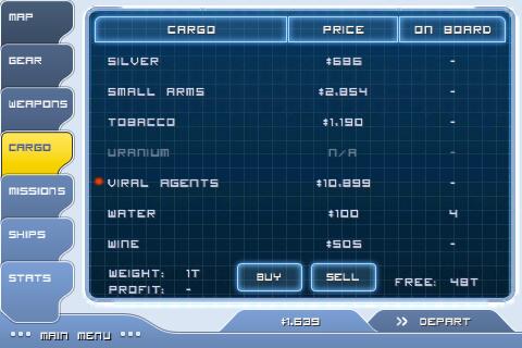 Auf den Stationen können Waren ein- und verkauft, Aufträge angenommen und das Schiff aufgerüstet werden. Ein echtes Manko: Schäden lassen sich nur ganz und nicht teilweise beheben. Dies sorgt gerade am Anfang für überflüssige Tode, wenn man nicht genug Geld für die vollständige Reparatur übrig hat. Wichtig: Von der Station kommt man nur weg, wenn man auf der Karte ein Ziel setzt. Ist kein Ziel in Reichweite, liegt es daran, dass nicht genügend Treibstoff geladen ist - zum Glück ist Treibstoff die günstigste Ware im Spiel.