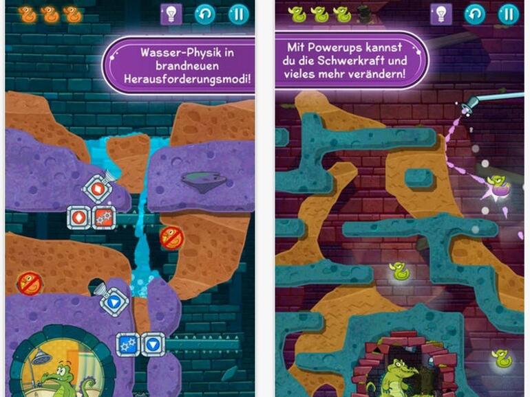 Neu sind unter anderem die Schauplätze, an denen man mit Swampy, Allie und Cranky für frisches Wasser sorgen muss: Da wäre zum einen die Kanalisation, dann die Seifenfabrik und der Strand. Dazu kommen 100 neue Level, aber als „Free-to-Play“ mit der Hürde einer Wartezeit bei fehlender, im normalen Spiel verlorener Energie von Level zu Level. Wer nicht warten möchte, muss zahlen. Ob das der richtige Weg war darf diskutiert werden. Besonders bei der jungen Zielgruppe ist es vorstellbar, dass Ungeduld siegt und so das Taschengeld in die App fließt.