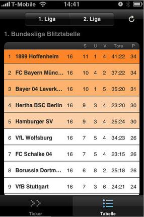 Wie der Name des Programms schon vermuten lässt, handelt es sich um den an das iPhone angepassten Live- Ticker des gleichnamigen Sportportals für die 1. und 2. Bundesliga. Das Programm bietet somit die aktuellen Spielstände in einer Übersicht und zu den einzelnen Spielen Informationen über Verwarnungen, Platzverweise, Auswechslungen, vergebene Chancen und natürlich die Torschützen. Ebenso wird die Tabelle angezeigt, die die aktuellen Spielstände berücksichtigt.