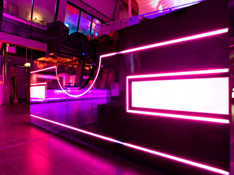 Über Dance-Kultur lässt sich ganz offensichtlich schlecht schreiben. Unter anderem wohl auch deshalb, weil Realismus in der Disco nichts zu suchen hat. Die Aufgabe eines guten Clubs besteht schließlich nicht in Wahrheitsfindung, sondern in der Schaffung und Aufrechterhaltung einer perfekten Illusion. Auch das Düsseldorfer 3001 dreht sich niemals ausschließlich um Musik. Stets geht es um die Arbeit mit dem Raum, das Ausloten und Erforschen von Emotionen, der Verbindung von nacktem Beton, Technologie und menschlicher Kreativität. Trotz seiner ungewöhnlichen Architektur ist der Club „im Hellen eigentlich eine recht nackte Halle ohne Schnickschnack“, so Club-Manager Fabian Veldmann. Eben diese Nacktheit indes liefert den Betreibern eine optimale Projektionsfläche – und das nicht nur im wörtlichen Sinne – für die Visuals, mit denen man sich zur Gründung vor acht Jahren unmittelbar in die Spitzenklasse katapultierte. Sondern ebenfalls für das Spinnen eben desjenigen undefinierbaren Stoffs, aus dem hier die Träume sind.