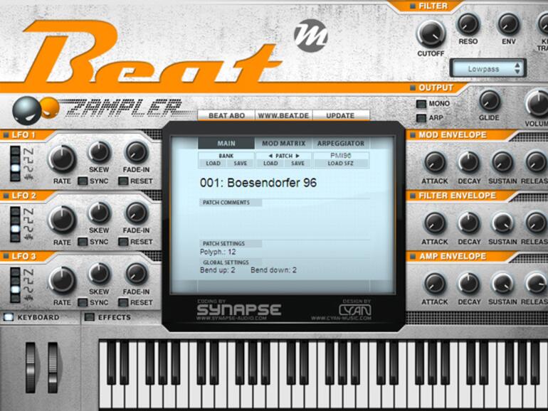 Der Zampler ist ab sofort inklusive Basis-Sound-Bibliothek kostenlos auf www.zampler.de erhältlich. Mit der aktuellen Ausgabe des Beat-Magazins 07-08|2012 erhalten Sie zudem ein Grand Piano im Wert von 69 Euro – weitere Libraries folgen mit kommenden Ausgaben des Magazins.