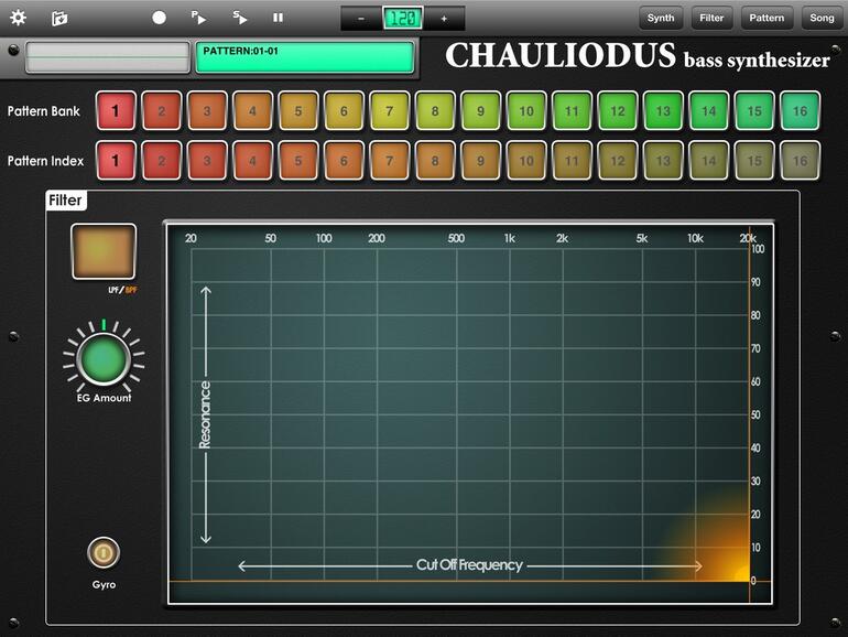 Den Klangtüftler erwarten zwei Oszillatoren (Sägezahn- & Rechteck-Wellenform), die von zwei Sub-Oszillatoren unterstützt werden. Der rohe Sound geht anschließend durch den LP/BP-Filter und den Overdrive-Effekt, mit dem das Signal noch so richtig angezerrt werden kann. Besonders clever ist die Gyroscope-Unterstützung des iOS-Geräts, was bei Bedarf die Cutoff-Frequenz und die Resonanz des Filters moduliert. Soll heißen, dass mit jedem Schütteln des iPhones auch der Klang manipuliert wird. Weitere Modulationsquellen sind ein LFO sowie zwei Hüllkurven-Generatoren. Die Sound-Programmierung erfolgt mit einem 16-StepSequenzer. Wireless Sync-Start Technology (WIST), AudioCopy und CoreMIDI werden unterstützt.