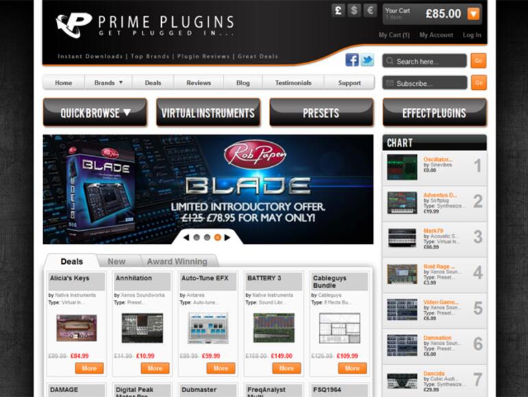 Die frühere Plattform Sound Sonic startet mit einem Relaunch als Prime Plugins neu durch. Die übersichtliche Webseite lädt zum Stöbern ein und bietet neben einer umfangreichen Auswahl an Software gleich passende Screenshots, Audiobeispiele und die Möglichkeit zum Beisteuern eigener Kommentare. Wer sich schon alle Presets seiner Synthesizer Werksoundbank leid gehört hat, wird ebenfalls fündig und kann in der umfangreichen Patchbibliothek für Nachschub sorgen.