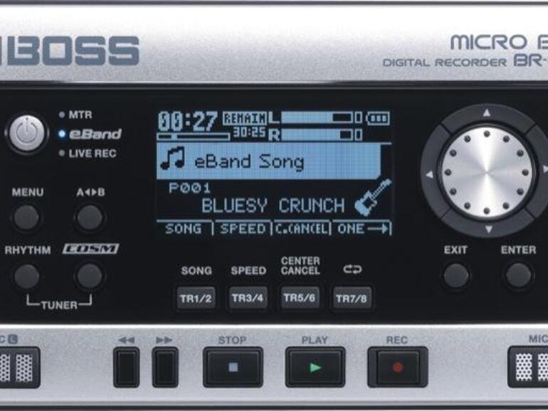 Der Boss Micro BR BR-80 verfügt über acht Aufnahmespuren für Aufnahmen auf SD-Karten sowie zwei Kondensator-Mikrofone. Der Rekorder kann insgesamt 64 Spuren aufnehmen und acht davon gleichzeitig wiedergeben. Zusätzlich gibt es eine Stereo-Schlagzeugspur, für die eine Vielzahl an Grooves zur Verfügung stehen soll. Neben der Funktion als Field- beziehungsweise Multitrack-Recorder verwandelt sich das Gerät im eBand-Modus als komplette Begleitband mit zusätzlichen Funktionen zum Raushören und Üben von Soli.