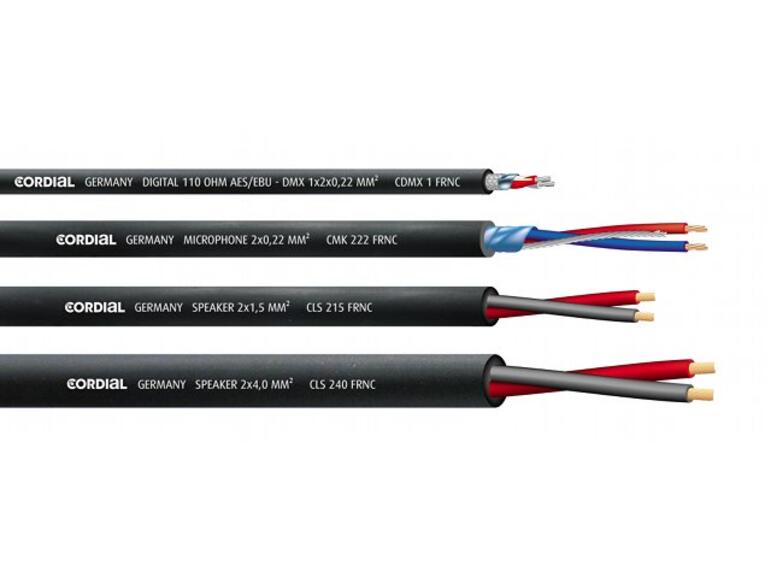 Die aufgelegten Lautsprecher-, Mikrofon- und Digitalkabel in FRNC-Ausführung (Flame Retardant Non Corrosive) erreichen durch die Verwendung von speziellen Polyolefinen für die Leiterisolation und halogenfreiem, flammwidrigem Copolymer für den Gesamtmantel die im Gebäudebereich geforderten Kabeleigenschaften nach VDE 0472/804 B und IEC 60332-1.