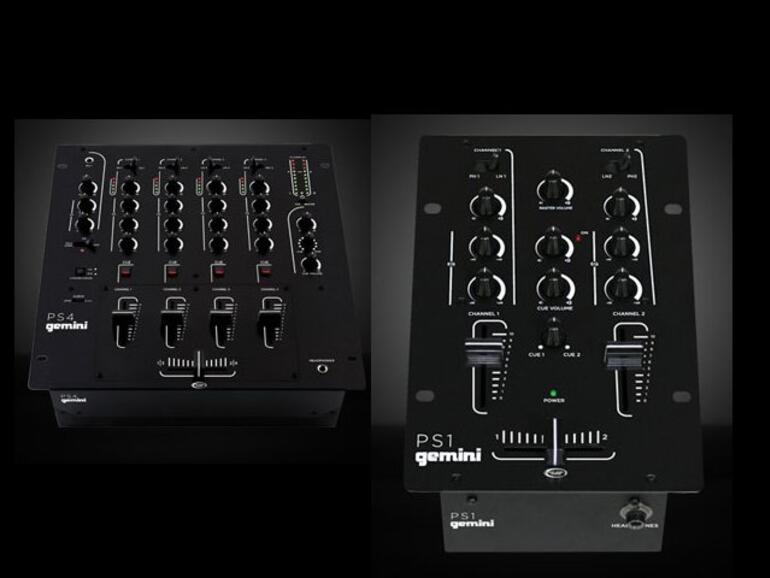 Der 12,5“ große Stereomixer PS 4 bildet mit vier Kanälen und symmetrischen XLR-Ausgängen das Flaggschiff der PS-Serie von Gemini. Ein besonders komfortables Feature des PS 4 ist die individuelle Pegelanzeige in jedem Kanal. Die Main-Pegel-Anzeige ist mit Master/Cue-Option ausgestattet und der Drei-Band-Equalizer, der auch bei diesem Modell pro Kanal mit Drehreglern eingestellt wird, kann mit einem Cut-Bereich von –30 dB aufwarten. Der PS 4 nennt gleich zwei 6,3-mm-Mikrofoneingänge sein eigen. Neben der separaten Lautstärkeregelung des Kopfhörerausgangs bietet der PS 4 auch Mikrofon-Volume mit Talkover und Zwei-Band-EQ sowie Cue-Tasten pro Kanal mit Cue-Regler/PGM-Fader. Der zuweisbare Crossfader mit regelbarer Curve ist austauschbar. Der PS 4 verfügt über Cinch-Master- und Record-Ausgänge. Dank dieser Features macht der PS-4 nicht nur eine gute Figur, wenn es darum geht, viele Signale gleichzeitig zu verarbeiten, sondern fühlt sich aufgrund seiner symmetrischen XLR-Ausgänge auch im Zusammenspiel mit professionellen Beschallungsanlagen wohl.