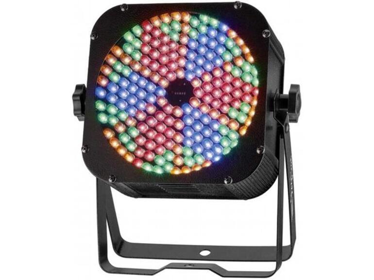 Der Spot-Scheinwerfer sitzt in einem flachen und schwarz lackiertem Aluminiumgehäuse. Das Gewicht beträgt 3,2 Kilogramm. Weitere Merkmale sind 198 superhelle 10-mm-LEDs (Abstrahlwinkel 20°) für „beste Lichtausbeute“ (Rot: 48, Grün: 48, Blau: 48, Amber: 54), ein Master-Slave-Modus mit automatisch ablaufenden Programmen sowie ein Farbmixer/Dimmer und Stroboskopfunktion. Das Bedienfeld ist mit einer LED-Anzeige für die Adressierung und Voreinstellungen ausgestattet.