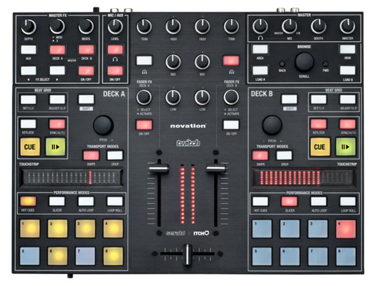 Twitch verfolgt laut Novation einen ganz neuen Ansatz zum DJing, denn auf der Oberfläche des Controllers finden sich große Triggerpads in zwei Achtergruppen, ein Crossfader sowie Fader-FX pro Kanal. Als absolute Neuheit werden die leuchtenden Touchstrips angepriesen, die DJing mit Gestensteuerung wie bei Touchscreens oder Smartphones erlauben soll. Mit den Touchstrips „greift“ man in seine Musik und navigiert durch Songs oder ändert einfach das Tempo, so Novation.