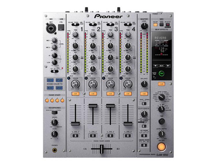Der Pioneer DJM-850 präsentiert sich als komplett MIDI-fähiger Vier-Kanal-Mixer mit integriertem Audiointerface (acht Ein- und Ausgängen bei 24-Bit und 96 kHz) im klassischen Pioneer-Design und extrem robuster Konstruktion. Der Digital-Analog-Wandler soll mit 32-Bit arbeiten und der Analog-Digital-Wandler mit 24-Bit.