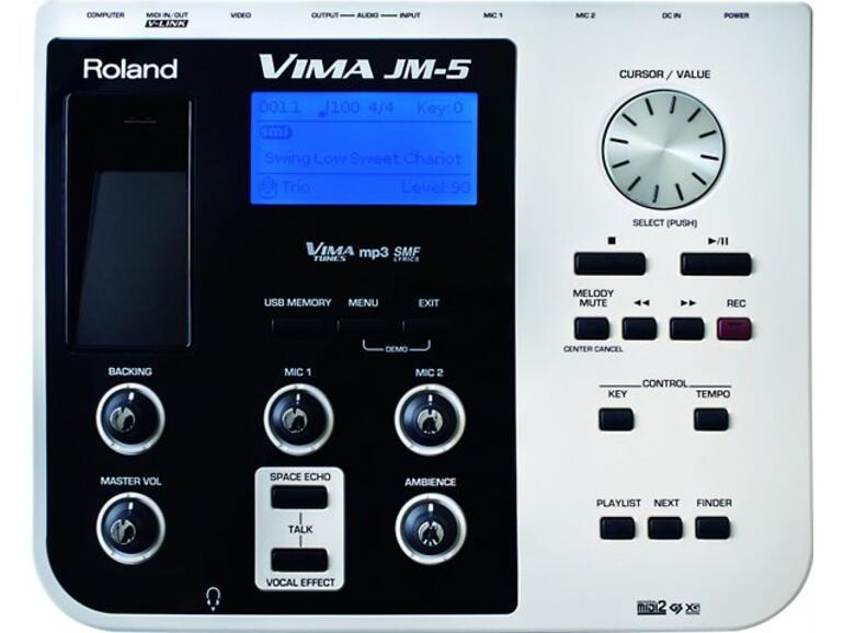 Über die beiden Mikrofoneingänge kann der Nutzer die Session starten. Das Sound-Modul bietet neben der Auto-Harmony auch weitere Effekte. Des Weiteren verfügt das Roland JM-5 über einen USB-Anschluss sowie einen Composite-Video-Ausgang.