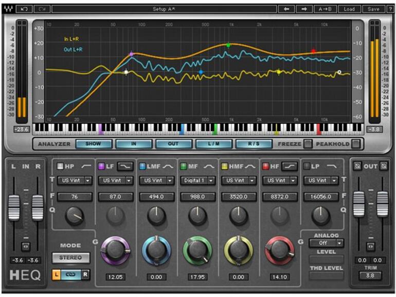 Das Plug-In Waves H-EQ verfügt über sieben Filtertypen, die für jedes Frequenzband separat nutzbar sind. Das bedeutet, dass der Nutzer beispielsweise die Tiefen mit einer Emulation eines analogen Filters und die Mitten mit einem digitalen Filter bearbeiten kann. Laut Hersteller steht dem Anwender unter den sieben Filtertypen noch ein neuentwickelter asymmetrischer Glockenfilter zur Verfügung. Durch den MS-Modus soll es möglich sein, unterschiedliche Equalizer-Einstellungen für die Mitten- und Seitenanteile des Signals vornehmen zu können. Weiter verfügt der H-EQ über eine virtuelle Klaviatur, um bestimmte Frequenzen direkt anzuwählen sowie eine Echtzeitdarstellung des Frequenz-Spektrums.